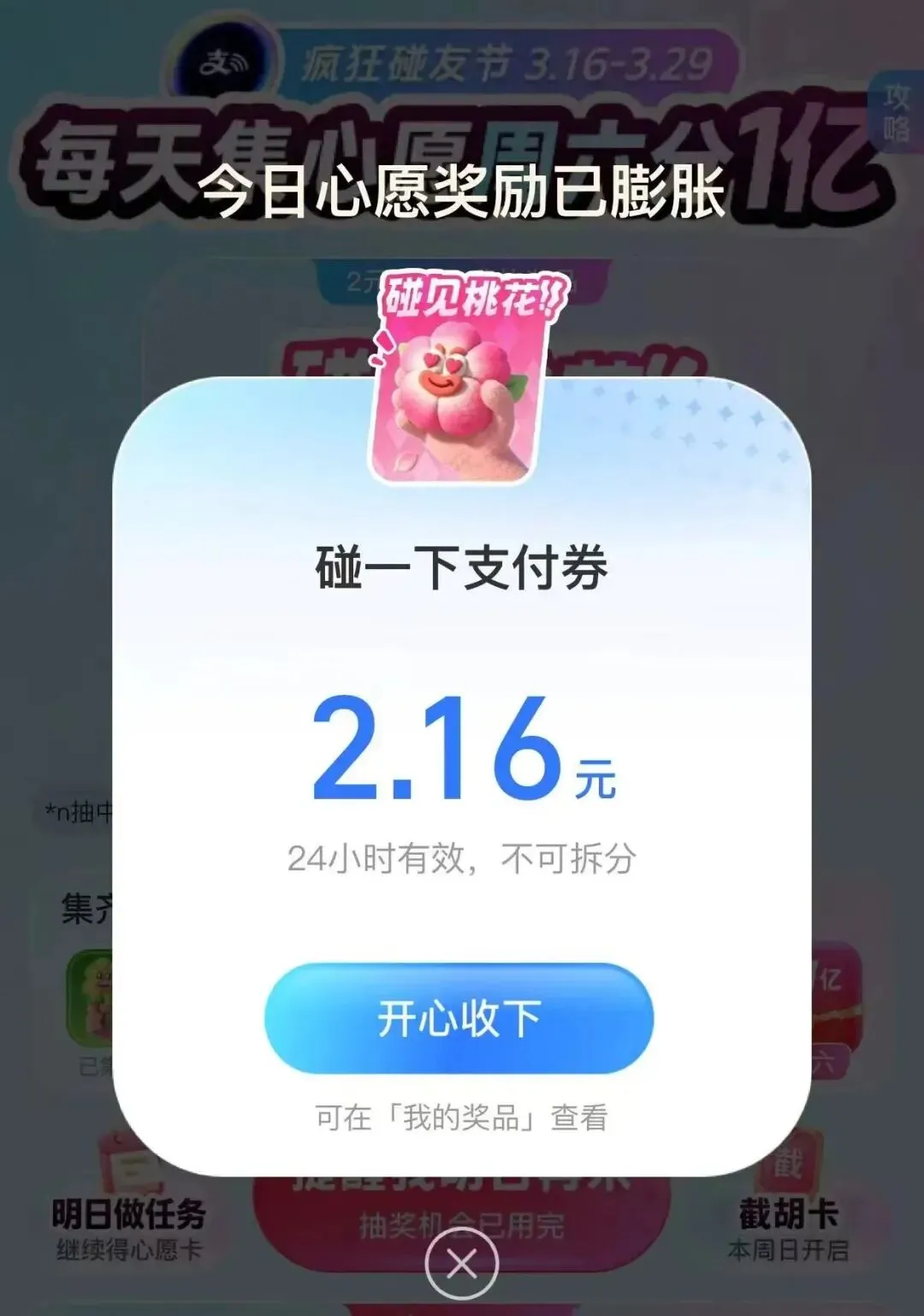 支付宝每天集卡兑1~2元支付券,周六分1个小目标