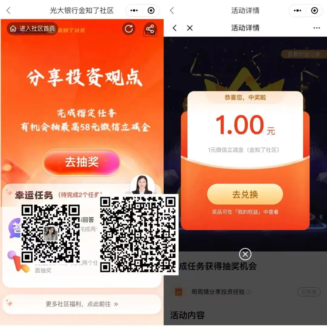 光大储蓄卡参与,抽1~58元立减金,非必中