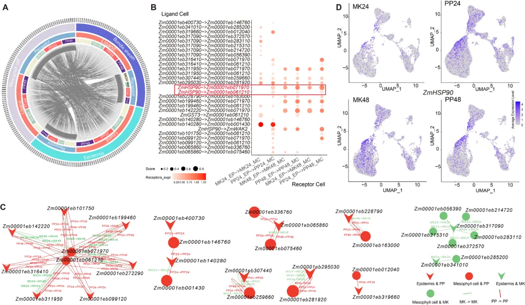 细胞间通讯揭示P. p侵染后玉米叶片从表皮细胞到叶肉细胞的级联响应信号传导过程