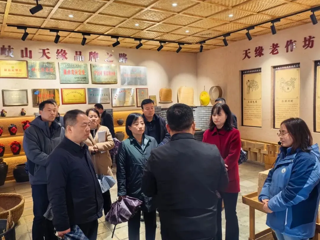 3月17日,陕西省农业农村厅一级巡视员郑芸瑄带领省农业厅调研组赶赴陕西省农业产业化重点经营龙头企业——岐山天缘,就其参与乡村振兴的创新实践开展专题调研。调研组一行冒雨先后实地考察了静态展示区、非遗传承区、创新发展区和品鉴体验区,深入了解企业在党建引领之下,积极参与乡村振兴的创新实践和感悟体会。当了解到岐山天缘与所在的自然村八角庙村展开的村企联建,现已形成了“三联共促”的创新模式,2025年国家AAA级醋文化景区年接待各类游客及研学团队已突破8.5万人时,调研组特别肯定天缘人在过程中的创新探索与实践。