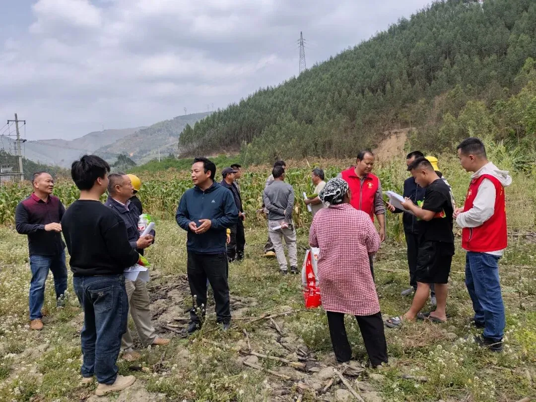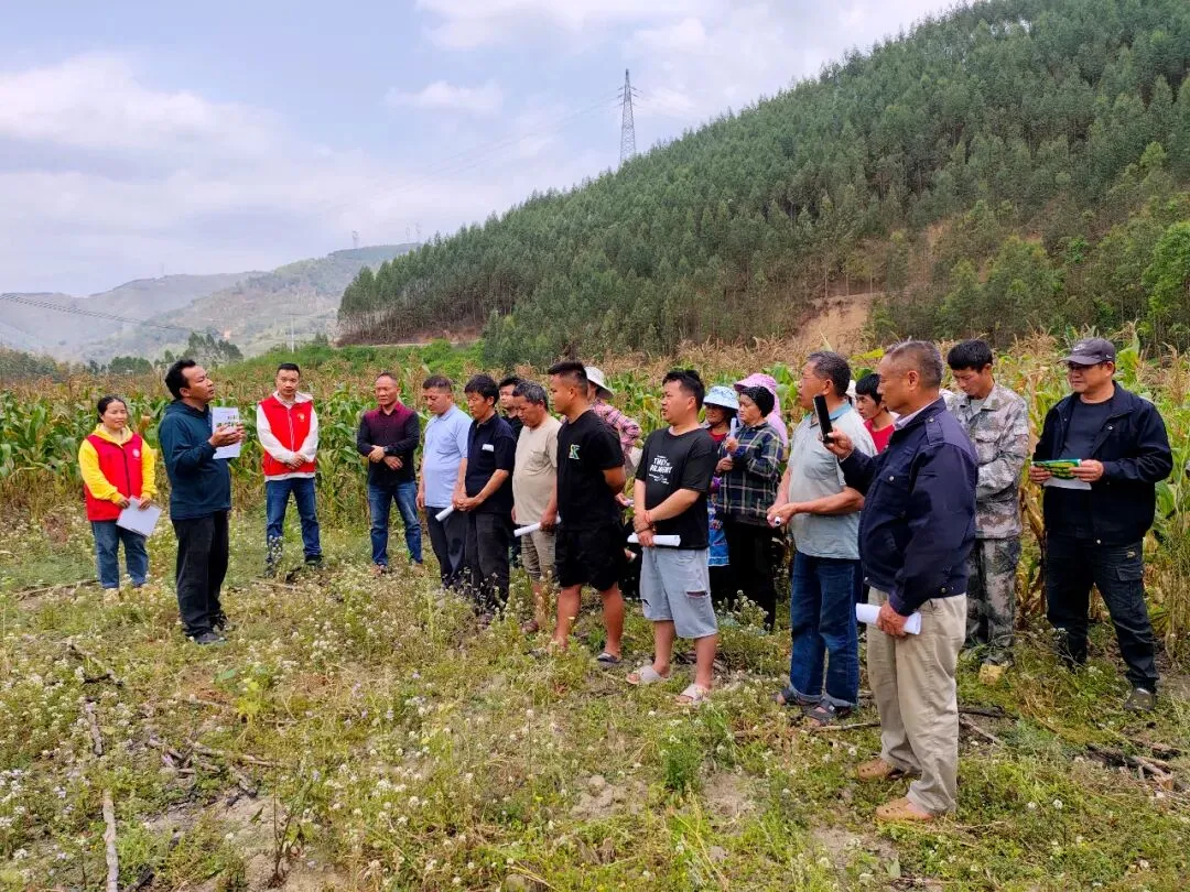 在红旗村百榄移民点,驻村工作队、村“两委”干部、乡农业服务中心工作人员与市农业农村局农技人员深入田间地头,立足当地土壤气候与生产实际,围绕玉米品种选择、适期播种、合理密植、规范栽培、科学施肥、主要病虫害绿色防控及适时收获等关键技术,开展“手把手”的现场讲解与实操指导。面对农户提出的实际问题,农技人员逐一耐心解答,切实提升群众科学种植与高产管理水平,为玉米增产、农民增收筑牢技术支撑。本次活动现场培训种植户30余人,发放玉米种植技术资料70余份。