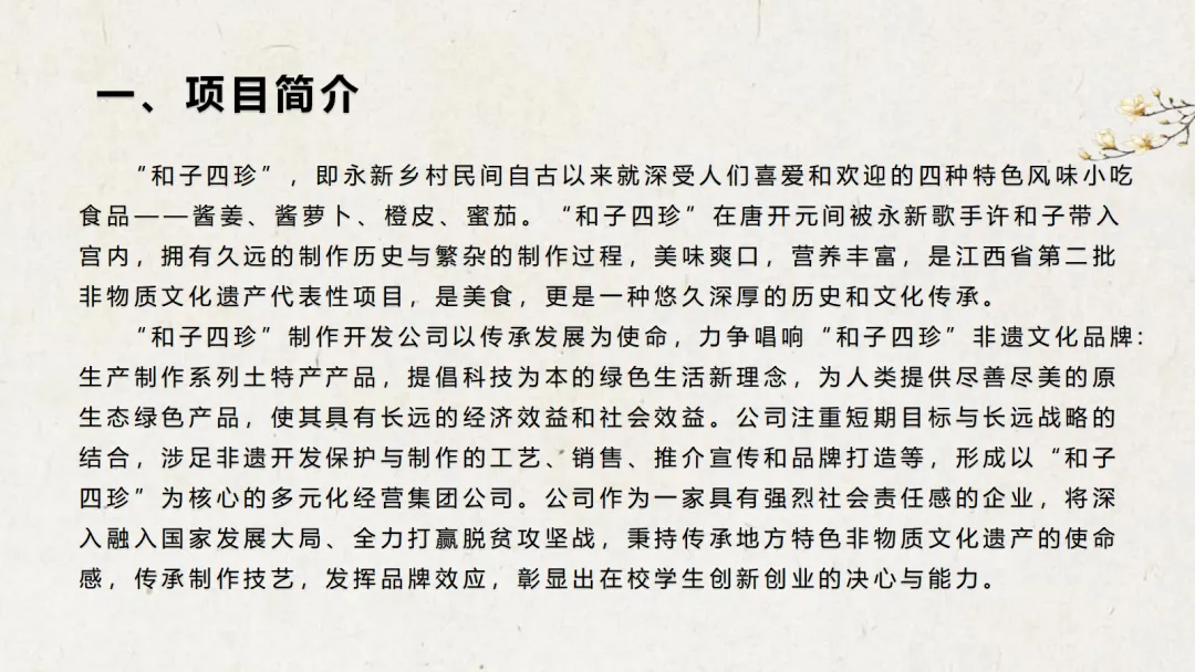 项目名称:“和子四珍”制作开发公司:让非遗文化活起来