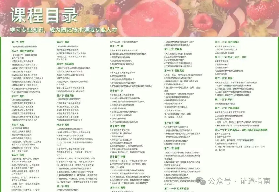 园艺师(细分方向:①花卉栽培、②果树栽培、③果树生产与管理、④蔬菜栽培、⑤蔬菜生产与管理)职业教育、技能培训