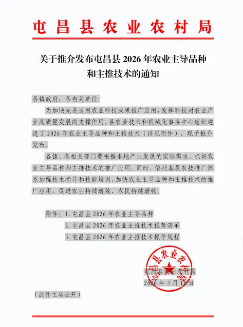 关于推介发布屯昌县2026年农业主导品种和主推技术的通知