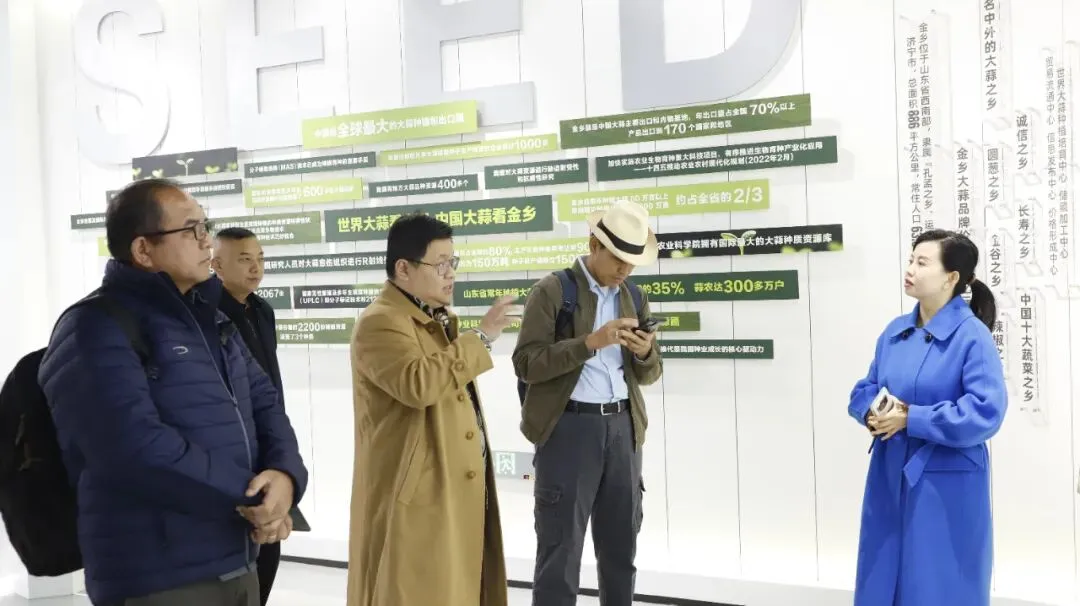 考察团一行先后参观了金春雨公司育种科普馆、实验室、现代化育苗工厂、大蒜品种试验区、嘉诚仓储冷链物流中心等核心板块。每到一处,考察团成员都认真听取介绍,详细了解京信集团在大蒜新品种选育、数字化智能育苗、绿色高效种植技术推广、生物有机肥及专肥特肥生产、农产品冷链保鲜技术等方面的创新实践与发展成效。现代化的设施农业、智能化的管理模式、科技感十足的种业创新,给印尼客人留下深刻印象。