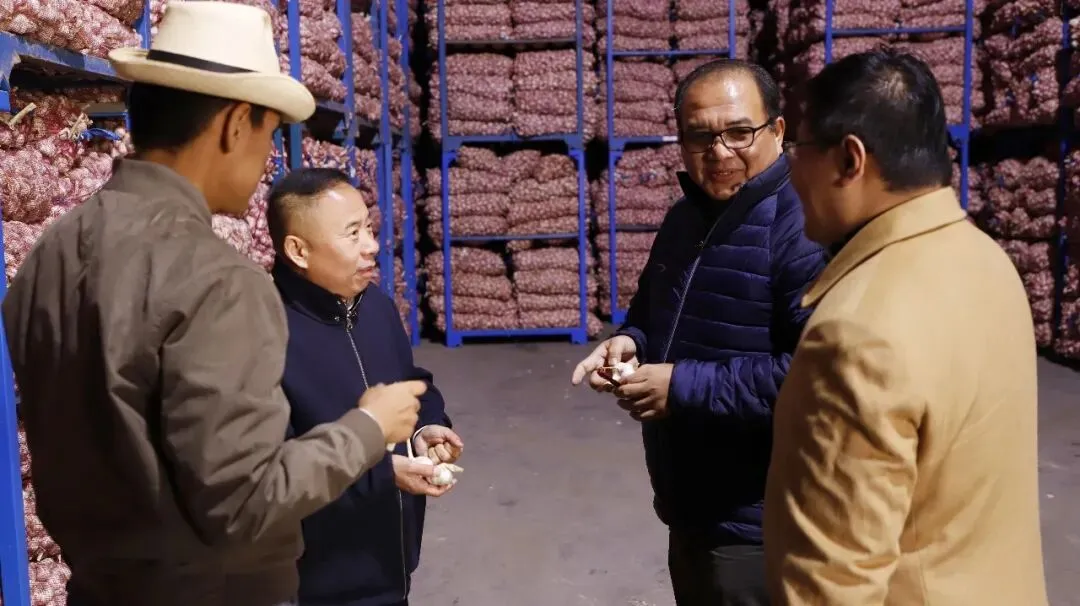 3月18日上午,印度尼西亚农业部园艺总局秘书Hotman Fajar Simanjuntak、农业园艺领域部长级专家Van Basten、印尼榴莲协会会长兼工商联秘书长Vincentsius Aditya一行莅临山东京信农业集团考察调研,并召开座谈会。金乡县委常委、副县长李兆胜,副县长王栋,化雨镇党委书记李泼,县商务局党组成员、副局长许淑敏,京信集团董事长杨建强等陪同考察并出席座谈会。