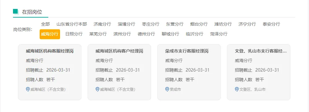 山东省分行2026年度春季招聘公告