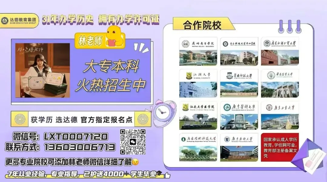 华南农业大学是国家“双一流”建设高校,是一所以农业科学、生命科学为优势,农、工、文、理、经、管、法、艺等多学科协调发展的综合性大学。学校以立德树人为根本,以强农兴农为己任,秉承“修德、博学、求实、创新”的校训,弘扬“笃学明德、躬行践履”的丁颖精神。学校学科门类齐全,目前高等学历继续教育办学共有24个本科专业和6个专科专业