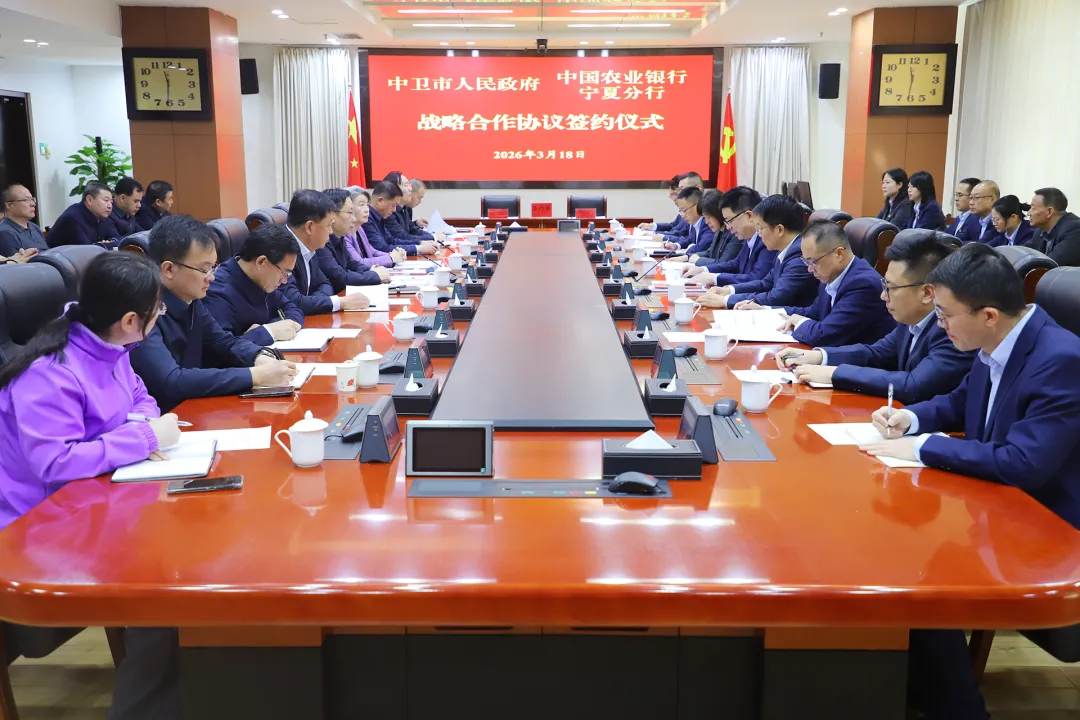 3月18日,中卫市人民政府与中国农业银行股份有限公司宁夏分行战略合作协议签约仪式举行。