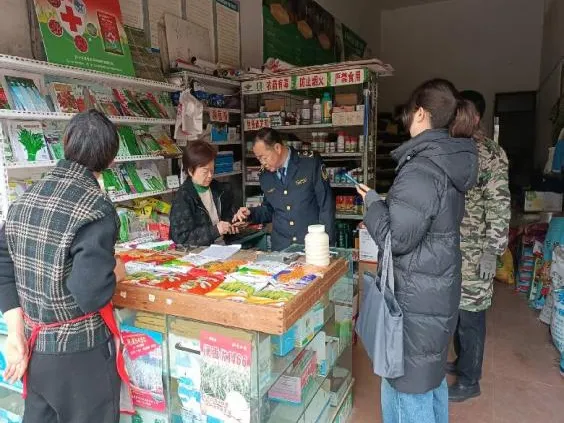 突出联合执法、重拳整治,严打违法违规行为。县农业农村局与县市场监管局建立信息共享、线索互移机制,开展农资打假专项检查,聚焦城乡门店、农贸市场、流动商贩等关键点位,严厉打击制售假冒伪劣、套牌侵权、虚标含量、虚假宣传、价格欺诈、禁限用农药违规销售等坑农害农行为。县农业农村局联合县市场监管局深入全县15个镇(街道)农资市场开展农资检查,共出动执法人员110人次、宣传车辆25次、检查农资经营门店120个,覆盖率95%以上。同时,重点对走村串户的外地农资游商开展流动检查。此次专项检查,发现个别商户存在台账记录不完善、价格标签不明、摆放不规范等情况,已责令其现场整改。