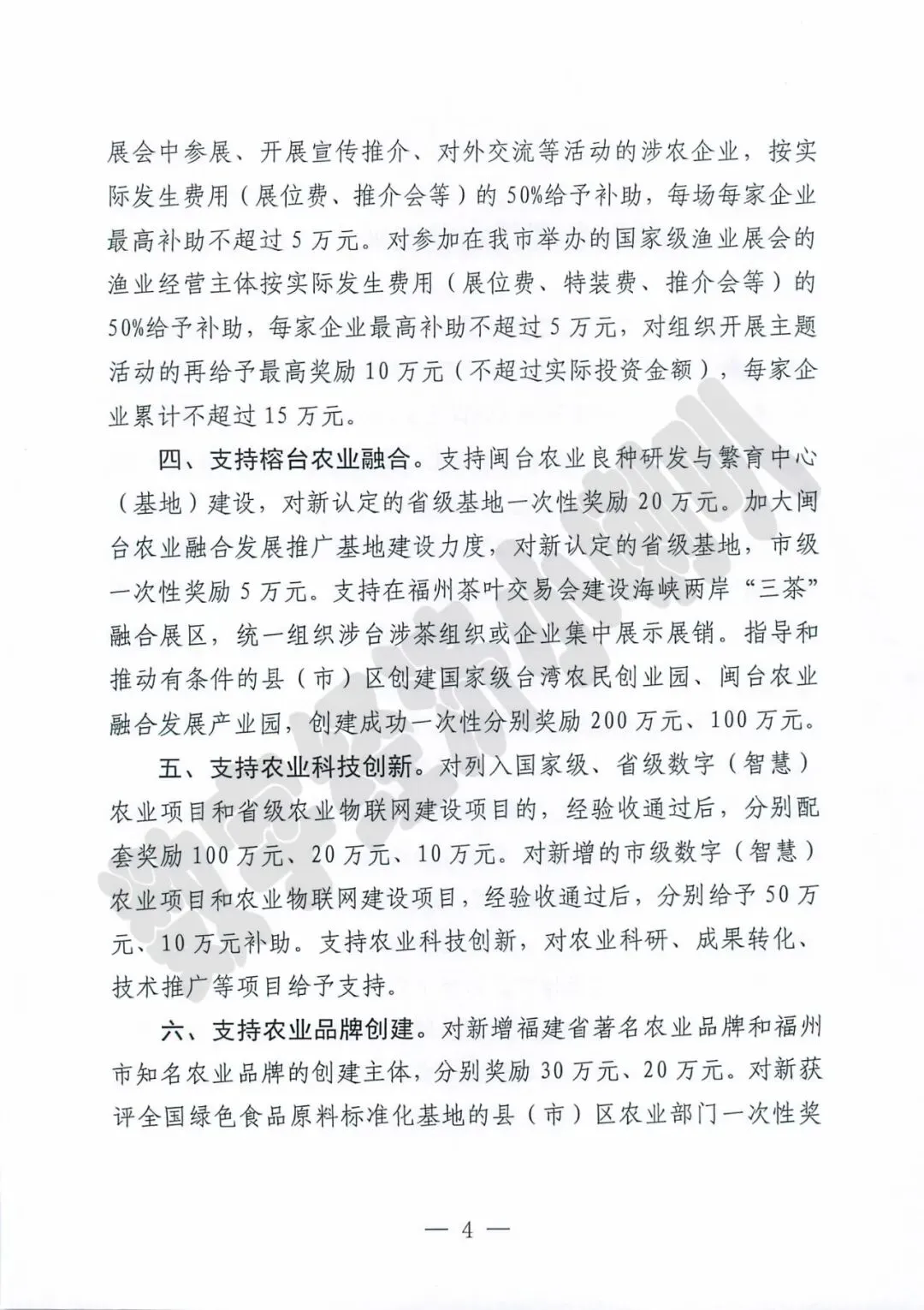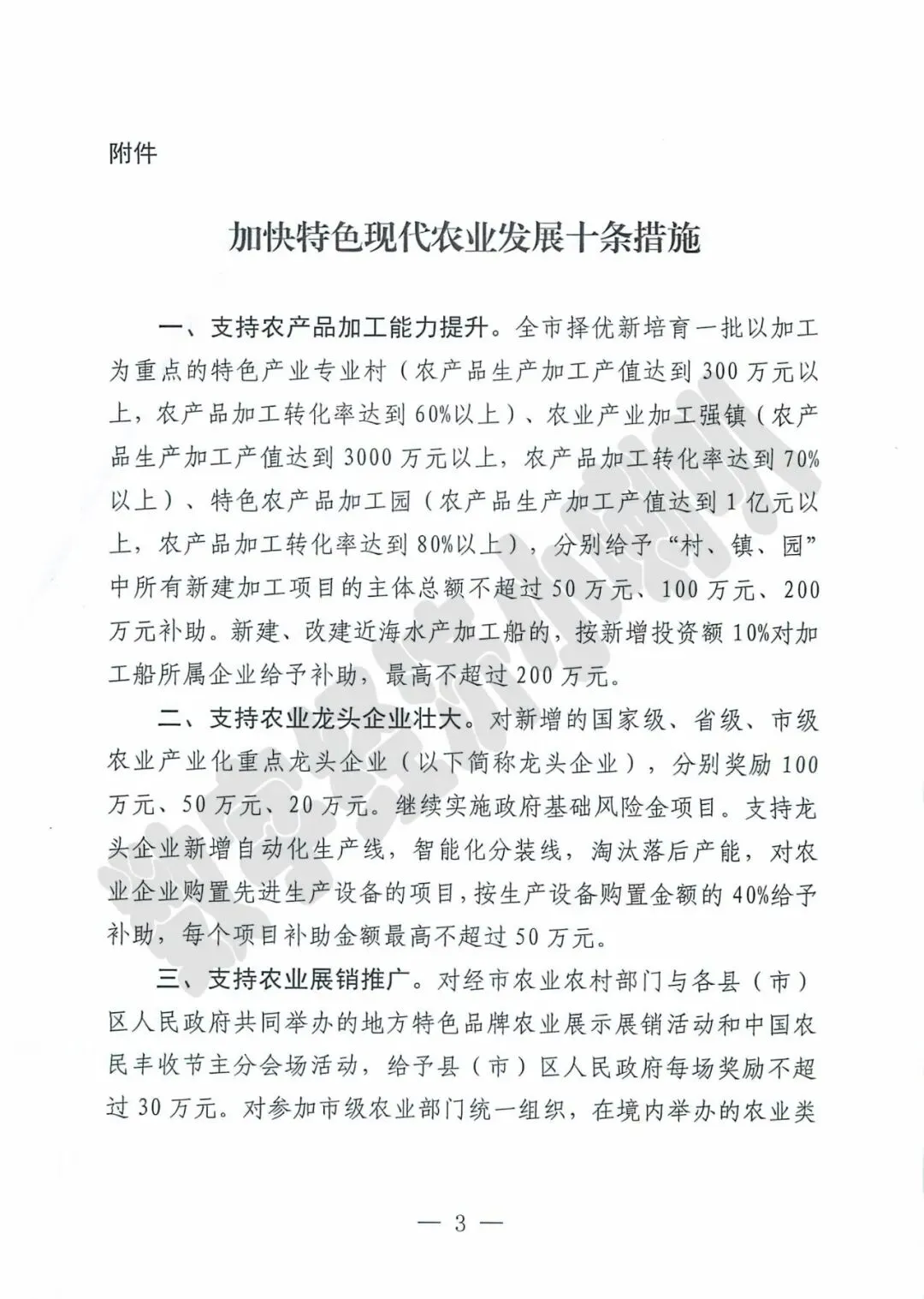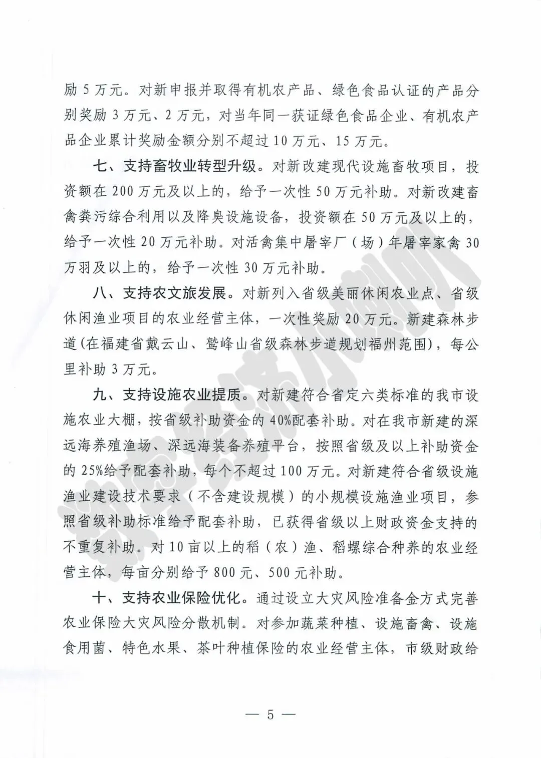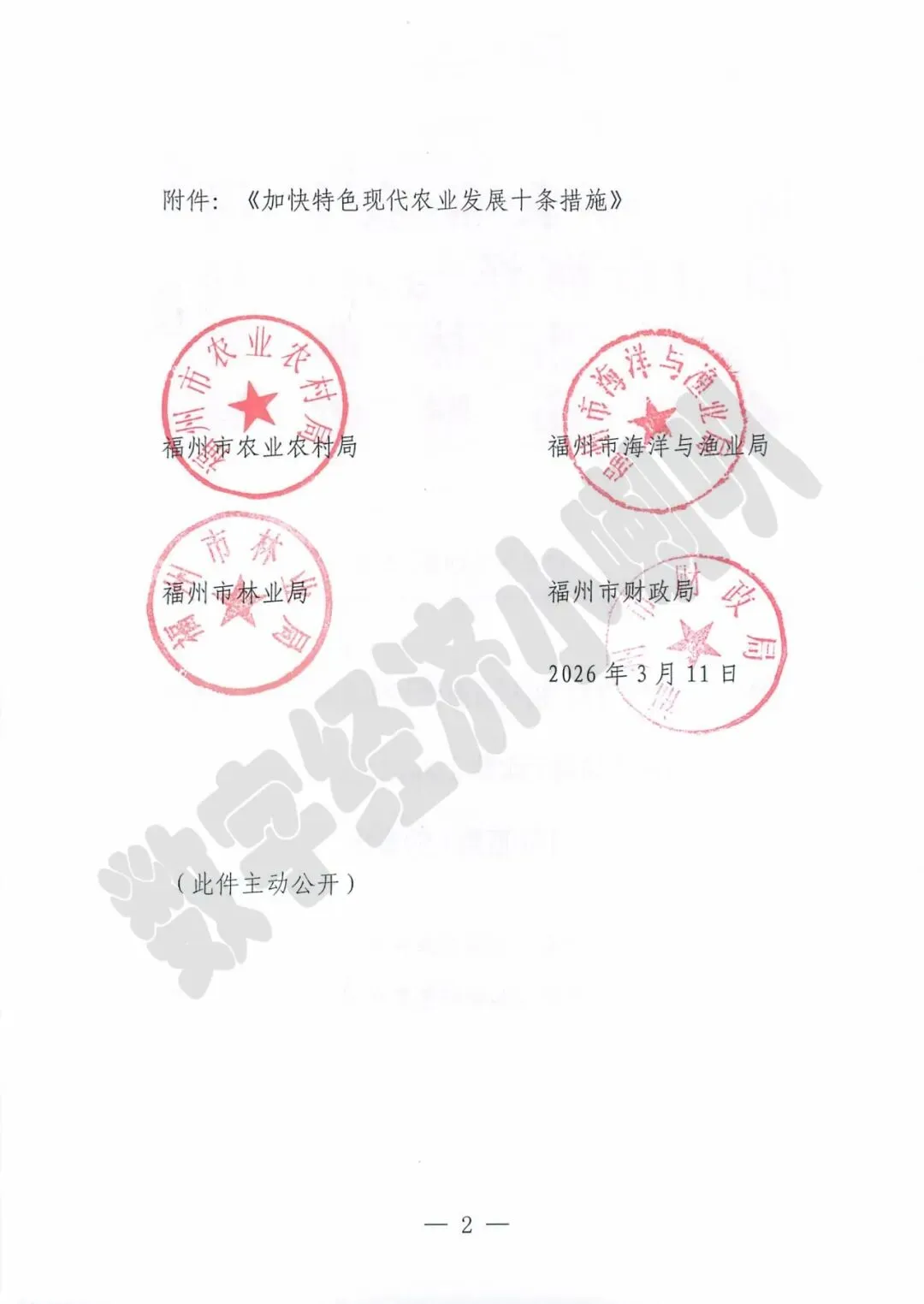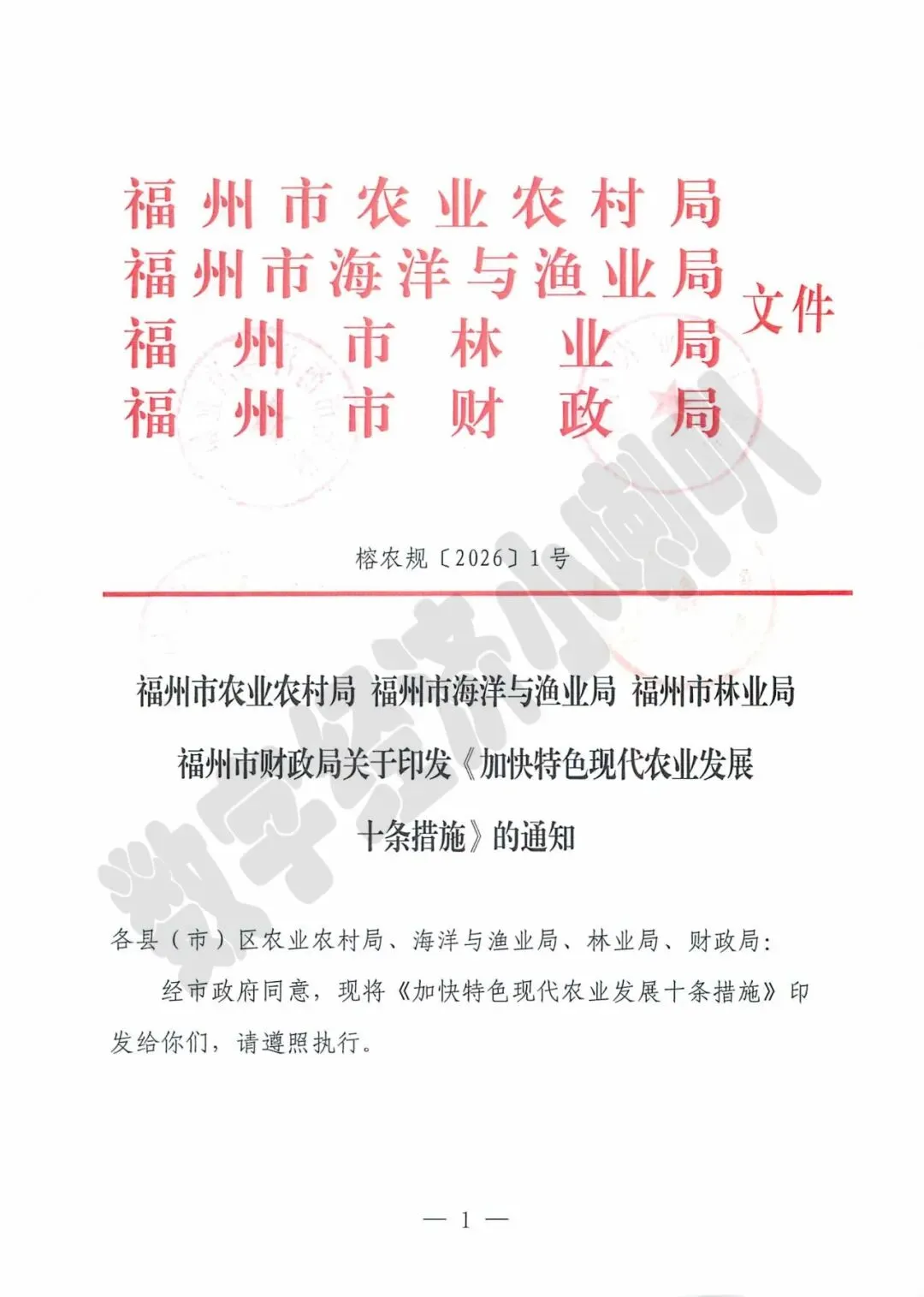 >福州市农业农村局等四部门关于印发《加快特色现代农业发展十条措施》的通知