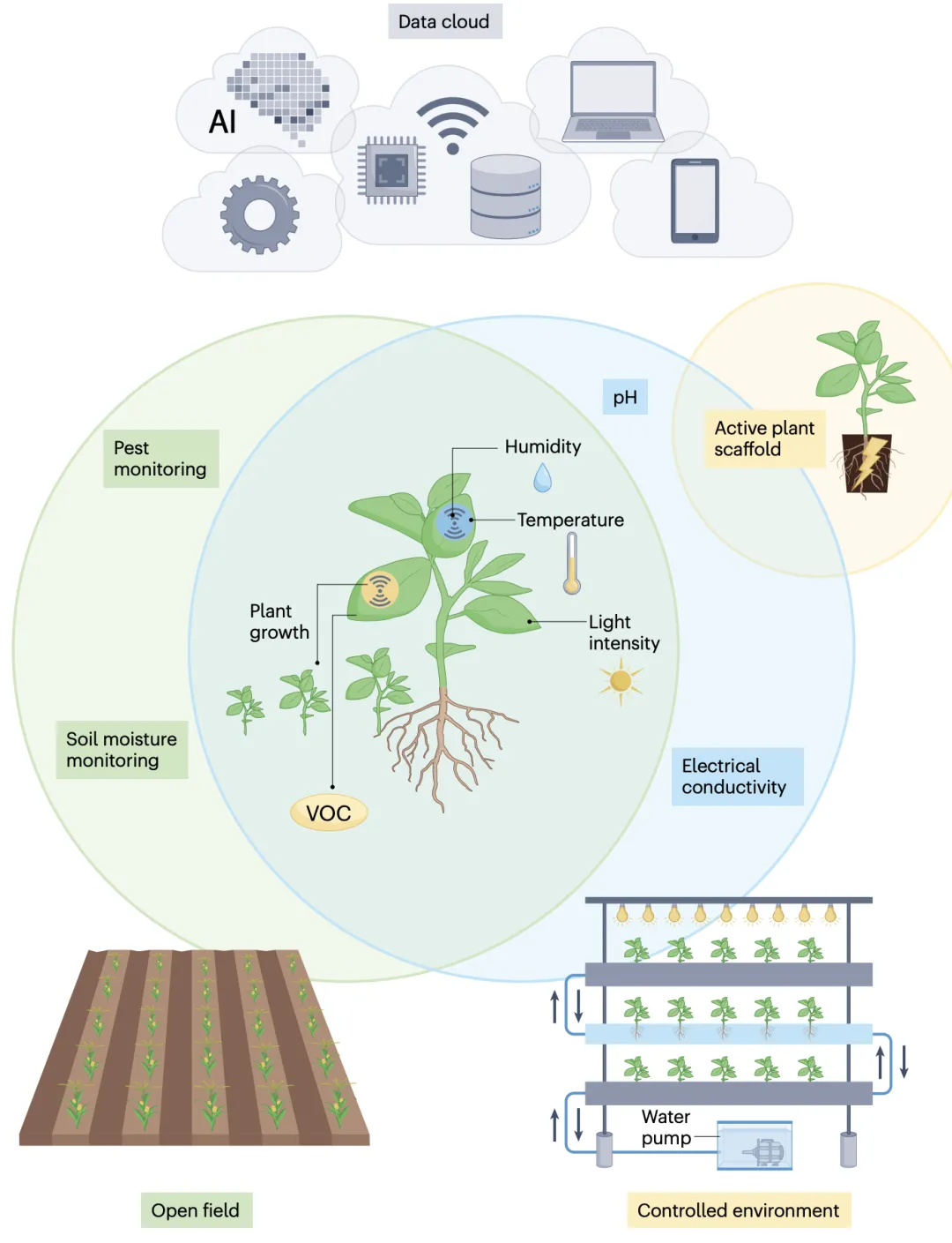 作者指出,目前大多数研究仍处于概念验证阶段,从实验室到田间部署面临多重挑战:传感器需要长期稳定性和低成本,植入式器件必须解决组织创伤问题,可穿戴器件须保持透气透光以免影响光合作用与蒸腾作用,大规模部署需考虑电子废弃物和生态毒性。推动该领域发展需要植物科学家、农学家与工程师的深度协作,真实农业环境中的中试验证是迈向产品化的关键一步。