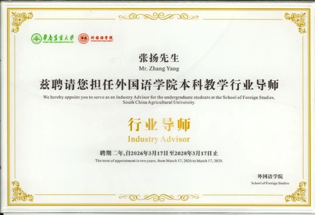 张扬律师与华南农业大学外国语学院的此次合作,不仅将为外语专业学生深入了解涉外法律领域、规划职业发展注入实务资源,也为法律行业吸纳复合型后备人才搭建了有效的沟通桥梁。