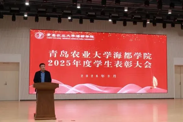 3月17日,青岛农业大学海都学院2025年度学生表彰大会在青岛科教园学术报告厅举行。校党委书记慕乾伟,学生工作处副处长、团委副书记孙家财,各二级学院党总支副书记、全体辅导员及学生代表参加大会,会议由学生工作处副处长曲志傲主持。