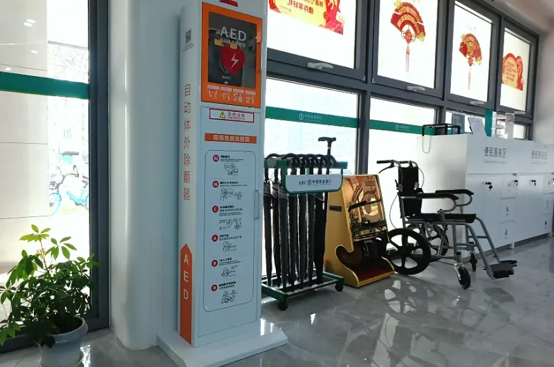 方寸厅堂,尽显适老服务贴心细节。坚持“客户至上,始终如一”服务理念,将适老化设计融入网点建设每一处细节,织就全方位守护网。网点环境静谧,无障碍通道搭配防撞软胶守护蹒跚步履;低位填单台配老花镜、放大镜和扶手座椅,彻底解决长辈书写难题。“金色港湾”休息区常备无糖茶饮、无糖酸奶等健康饮品,践行“情暖桑榆 乐享无糖”理念;在墙面制作健康指南,更将关怀从金融延伸至生活,让厅堂成为长辈的休憩港湾。