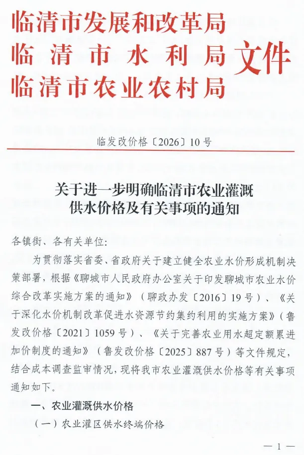 临清3部门联合通知!事关农业灌溉水价