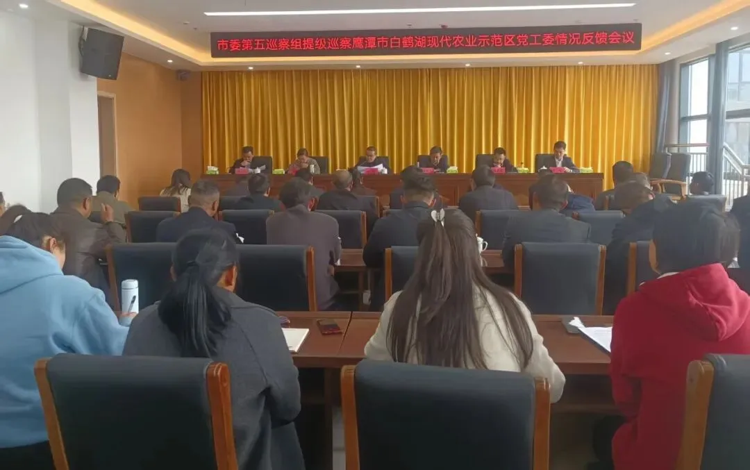 3月17日,鹰潭市委第五巡察组向白鹤湖现代农业示范区党工委反馈巡察情况会议召开。会议传达了鹰潭市委书记王亚联在听取巡察情况汇报时的讲话精神,鹰潭市委第五巡察组组长方炜反馈巡察意见,贵溪市委副书记黄建军出席会议并讲话,贵溪市政府党组成员、白鹤湖现代农业示范区党工委书记、管委会主任黄宝财主持会议并作表态发言。