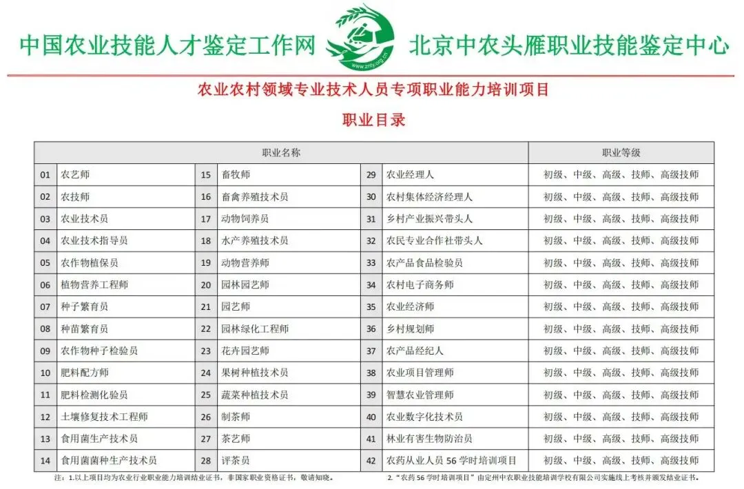 1.中国农业技能人才鉴定工作网