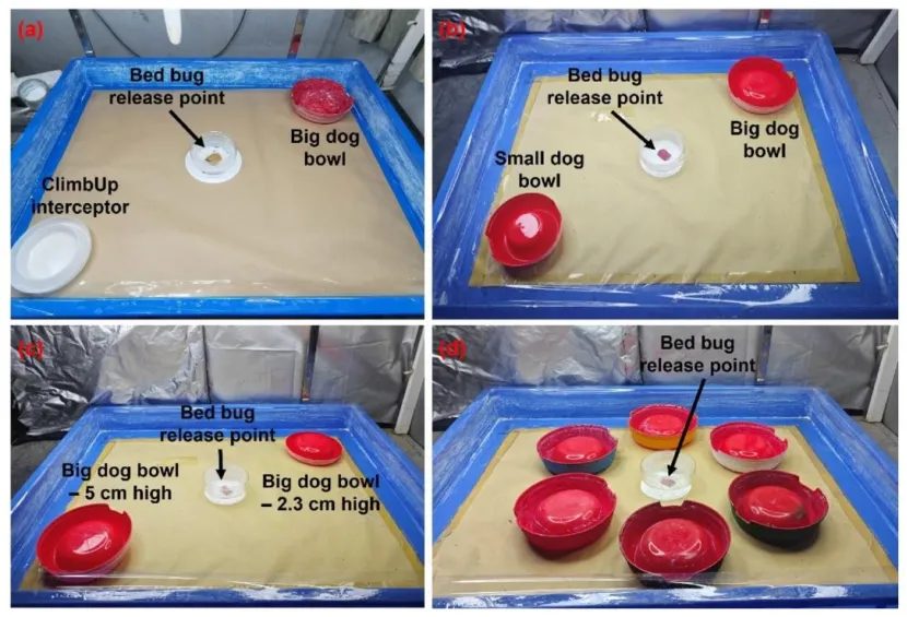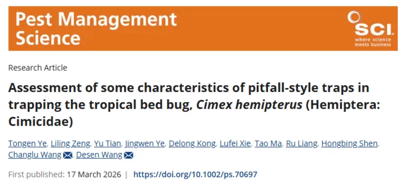 “Assessment of some characteristics of pitfall-style traps in trapping the tropical bed bug, Cimex hemipterus (Hemiptera: Cimicidae)”文章发表在《Pest Management Science》。倒置宠物碗陷阱捕捉热带臭虫的效果显著优于商用ClimbUp拦截器;陷阱高度、外壁颜色、内壁防逃逸涂层是决定捕捉效率的核心因素,高尺寸陷阱、蓝/红/黑色外壁、氟树脂/滑石粉/硅藻土内壁涂层的组合效果最优,其中滑石粉与硅藻土还兼具杀虫作用。