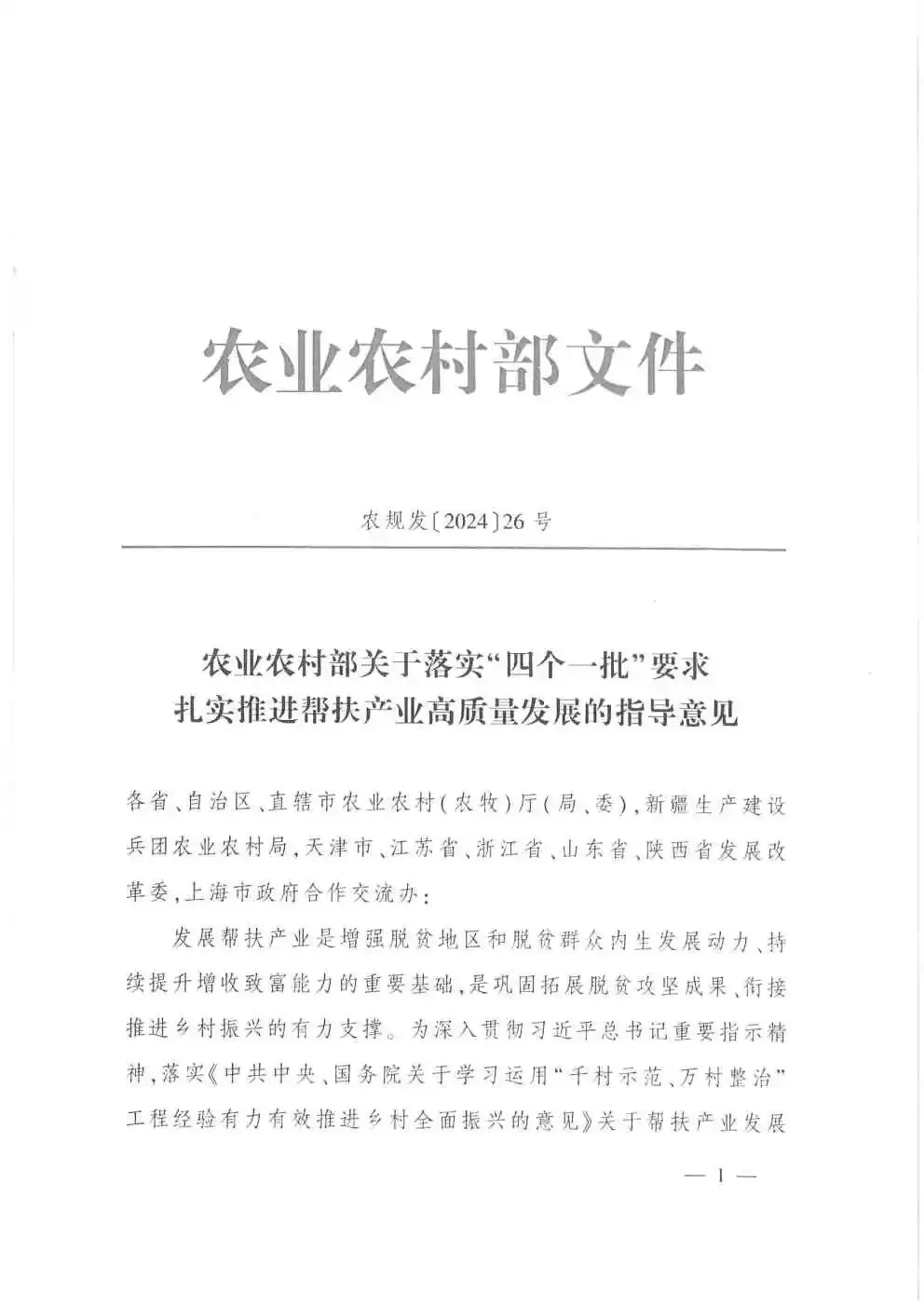 【政策速递】农业农村部关于落实“四个一批”要求扎实推进帮扶产业高质量发展的指导意见