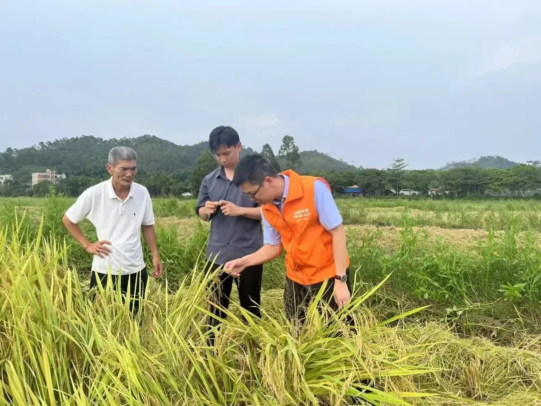 人保财险组织农险团队深入博罗等种植基地,协助农户清理沟渠、排除田间积水,现场讲解雨季田间管理要点,将服务窗口前移至生产一线。