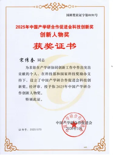 中国产学研合作创新人物奖是由中国产学研合作促进会设立,经科技部和国家科技奖励办公室批准的国家级社会科技奖项,是我国产学研界协同创新的最高荣誉之一。经专家评审、公示、终审等严格程序,本次全国共122位同志获此殊荣。