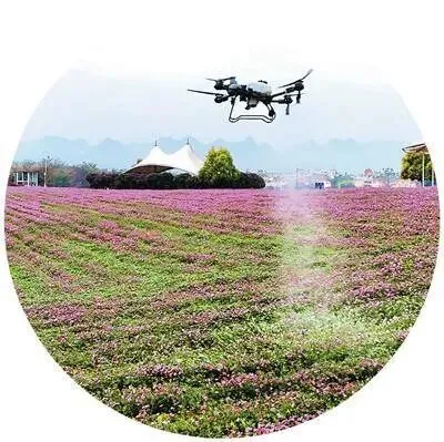 广西壮族自治区来宾市忻城县城关镇范团村格桑花种植基地,工作人员操控植保无人机为花田喷洒肥料。樊绍光摄(人民图片)