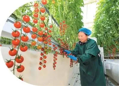 近年来,安徽省淮北市烈山区发展设施蔬菜产业,运用无土栽培、智能水肥一体化等技术,精准调控生长环境,实现果蔬提质增产。图为烈山区古饶镇智慧农业产业园智能化玻璃温室内,工人正在采摘小番茄。李 鑫摄(人民图片)