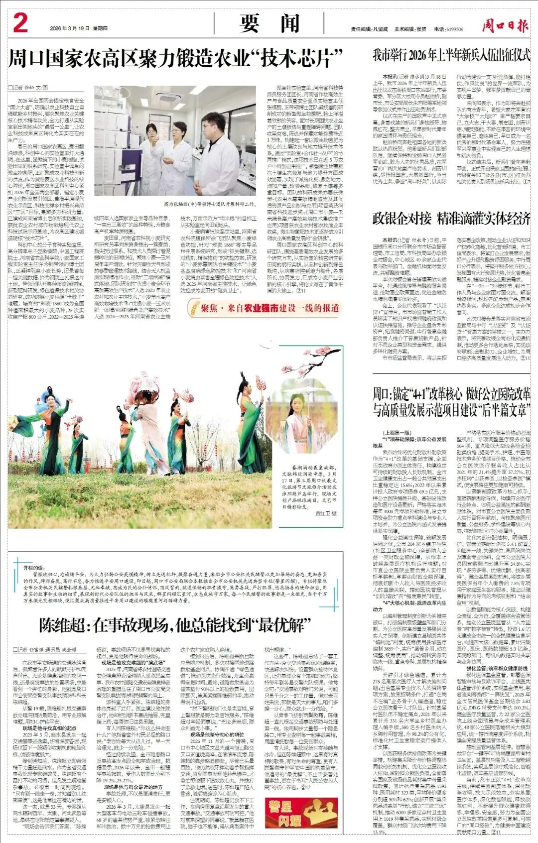 春日的周口国家农高区,麦田翻涌绿浪,科创中心的实验室里灯火通明。在这里,显微镜下的小麦细胞、试验田里的根系研究、实验室中诞生的微生物菌肥,正汇聚成农业科技创新的洪流。作为黄淮麦区农业科技的核心阵地,周口国家农高区科创中心紧扣2026年全国两会部署,锚定小麦产业创新发展引领区、黄淮平原现代农业示范区、科技支撑乡村振兴典范区“三区”目标,集聚多方科研力量,已建成河南省博士后创新实践基地,获批农业农村部作物栽培现代农业科技试验示范基地,为农高区建设锻造硬核“技术芯片”。