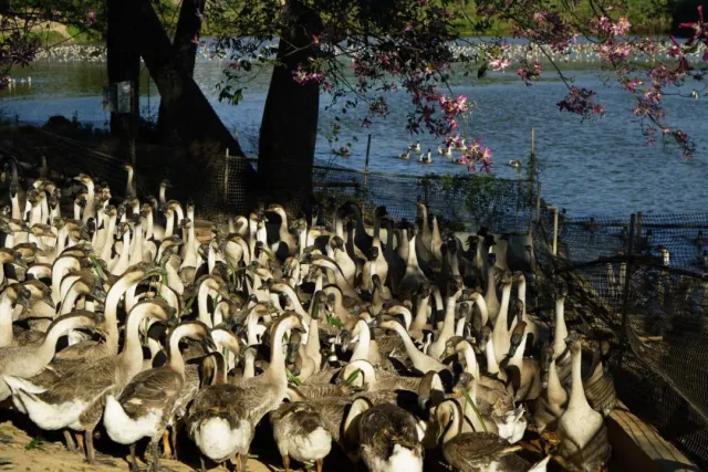 马冈鹅作为“广东四大名鹅”之一,肉质鲜美,营养丰富,马冈鹅获得国家农产品地理标志认定。目前,开平市已形成以马冈镇、苍城镇、月山镇为主的马冈鹅养殖集中区。其中,马冈镇是全国“一村一品”示范镇和马冈鹅特色农产品优势区。2021年,开平全市的马冈鹅养殖场(户)达750家,其中规模养殖场(户)233家,全年出栏量达500万只,居江门市第一。今年3月,开平以马冈镇为试点,打造全国首个镇域行政区品牌“马冈优品”,力争到2025年,马冈鹅系列产品产值达100亿元,其他系列产品产值达到10亿元。
