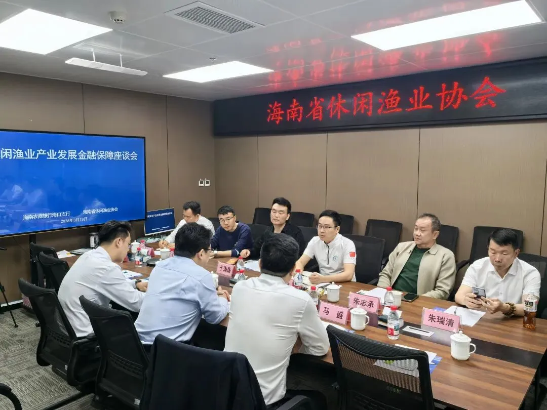 海南农商银行海口支行行长李勇,海南省休闲渔业协会会长朱庞、新加坡投资商朱志承等出席座谈。