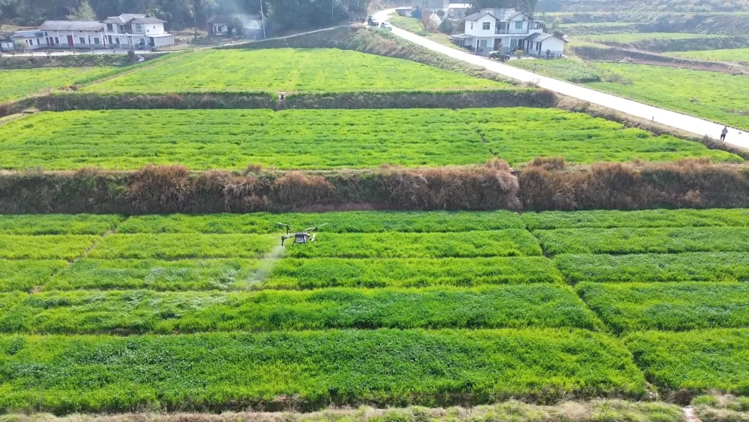 连日来暖阳照耀,田里的小麦长势喜人。村民轻摁按钮,无人机腾空起飞,不一会儿,一块七八亩大的四方田块的水肥施加完毕。这一幕,是记者在四川省巴中市通江县铁佛镇观山坪村现代农业园区中看到的情景。如今,这样的现代农业园区,已遍布通江县各个乡镇。