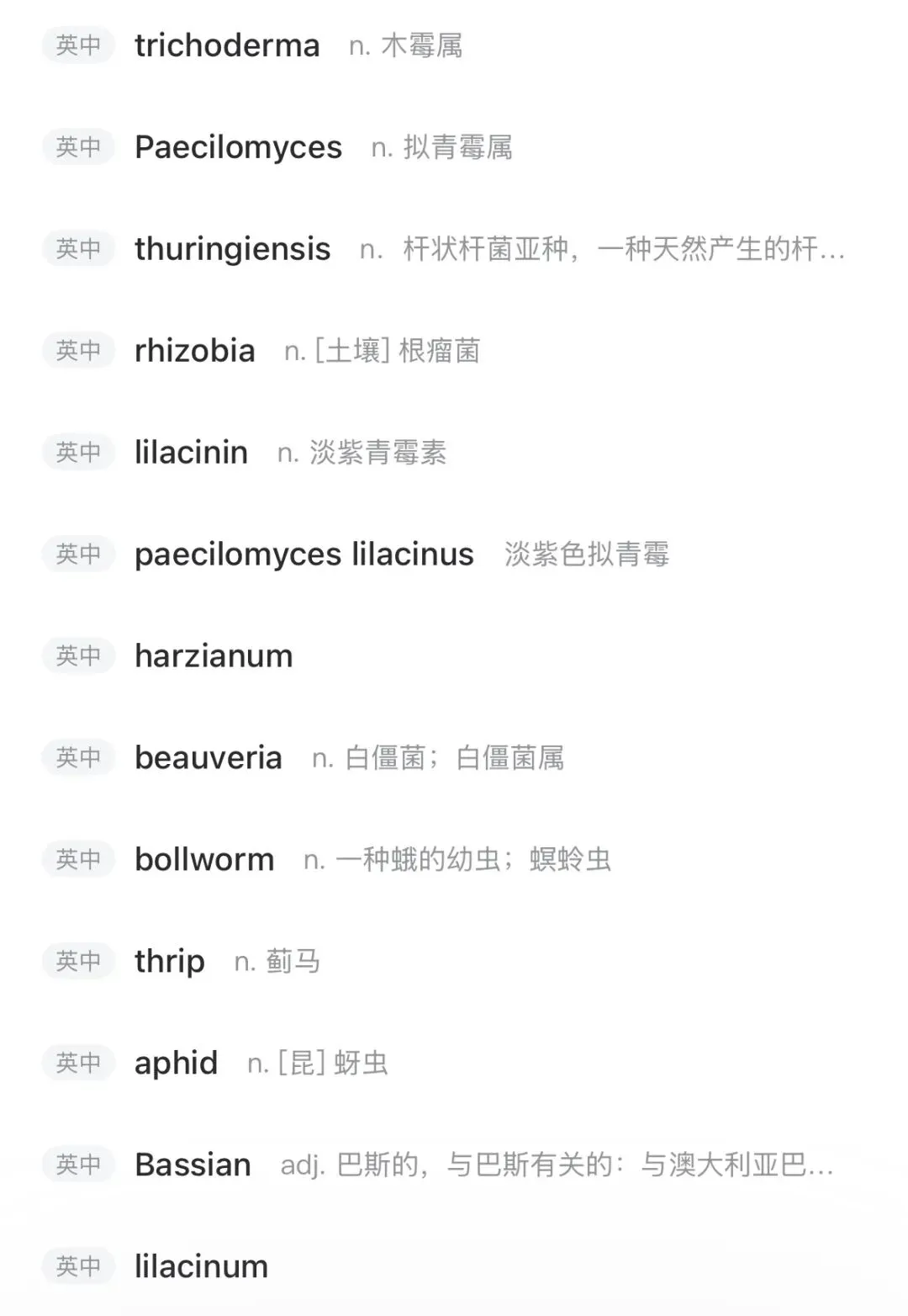 展会第一天,我8点到了会展中心地铁站,8点半到了客户展位,想着再念顺一些生物学的名词。果然,刚到后,就有一个菌板展示板,我在座位上用词典查一些生物学术语的发音,我学会了需要给公司的人说一下,我就念着拗口的名词,像“paecilomyces lilacinus”得读十几遍,“rhizobia”这种简单的几遍就可以了。从外国人嘴里识别到“Bacillus”这样简单的词不难,但是识别到更难一点的生物学名词时,还有点惊喜。鉴于专业性太强,上面贴有中英文菌种的塑料板我们基本没怎么离手,如果客户要看,直接展示就行。