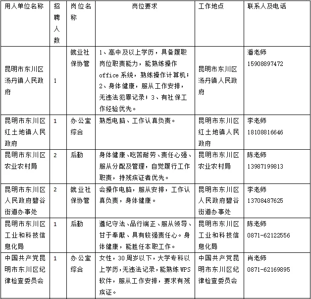 东川招聘丨购买社保,东川区农业农村局、东川区工业和科技信息化局等11个单位招聘16人!