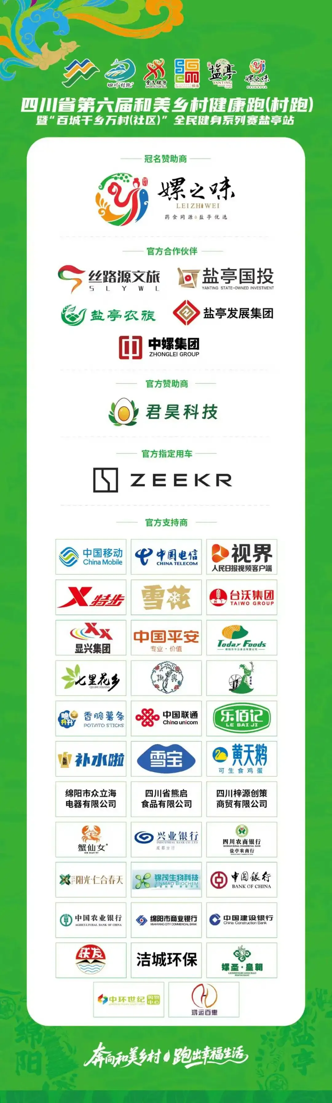 以村跑为媒,推进农文体旅深度融合,盐亭君昊农业科技有限公司(简称“君昊农业”)正式成为四川省第六届和美乡村健康跑(村跑)暨“百城千乡万村(社区)”全民健身系列赛盐亭站官方赞助商。