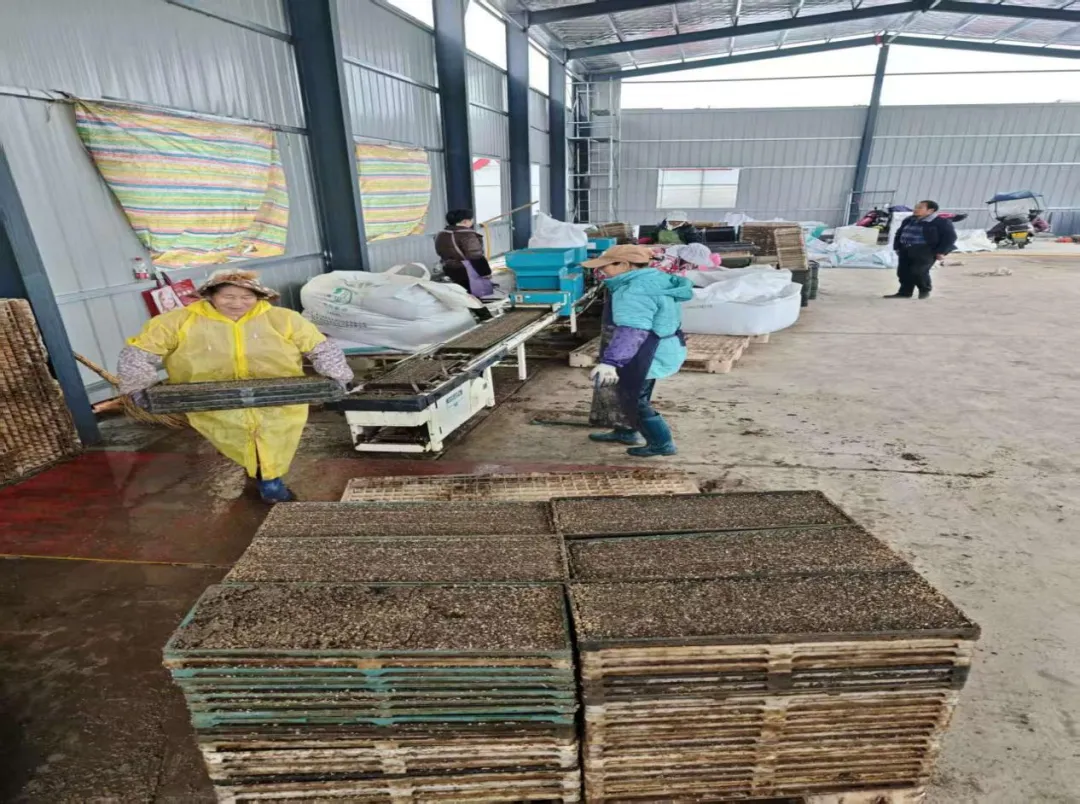 走进这座新建的智慧育秧工厂,映入眼帘的是一条流畅运转的自动化生产线。只见空秧盘随着传送带有序前行,一旁的基质土装置精准自动下料,将调配好的营养土均匀铺撒在盘内;随后,经过浸种、拌种处理的稻种被均匀播撒在土床上,覆土、洒水等工序一气呵成。最引人注目的是生产线末端的自动抓盘、码盘系统:机械臂精准抓取完成播种的秧盘,整齐划一地堆叠成垛,等待后续进入暗化催芽和炼苗环节。