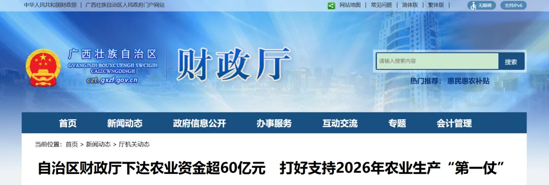 为深入贯彻落实中央、自治区关于“三农”工作决策部署,切实落实好2026年中央一号文件相关精神,打好支持全年农业生产“第一仗”,截至目前,自治区财政厅累计下达2026年中央和自治区农业相关转移支付资金超60亿元,以早安排、早下达、早落实推动“开局高质量”,为全区农业生产开好局起好步提供坚实财力保障。