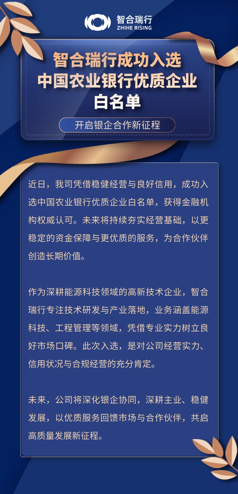 >智合瑞行成功入选中国农业银行优质企业白名单