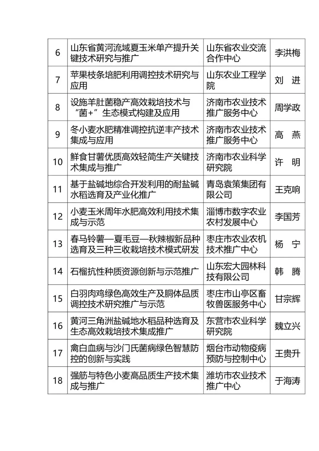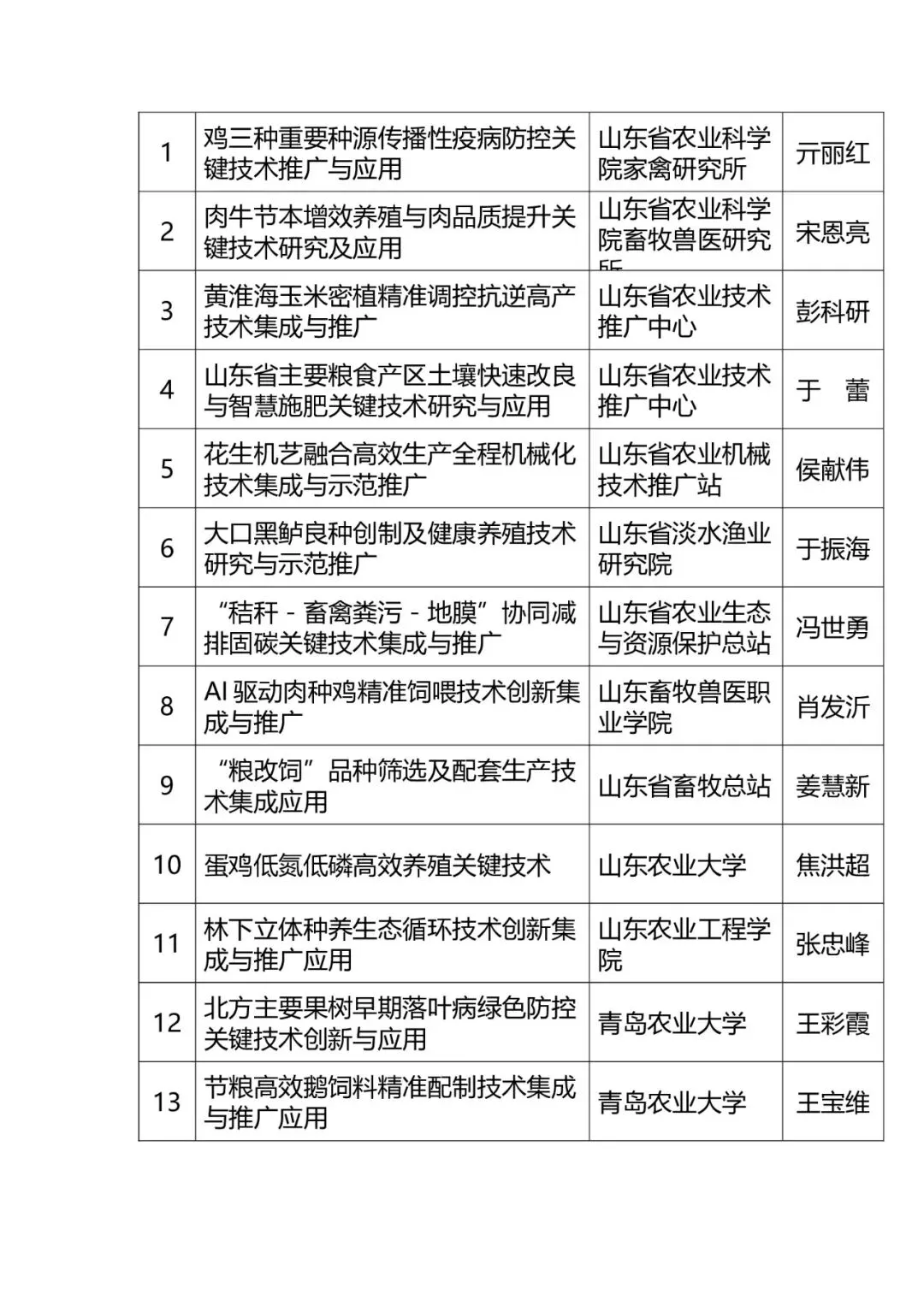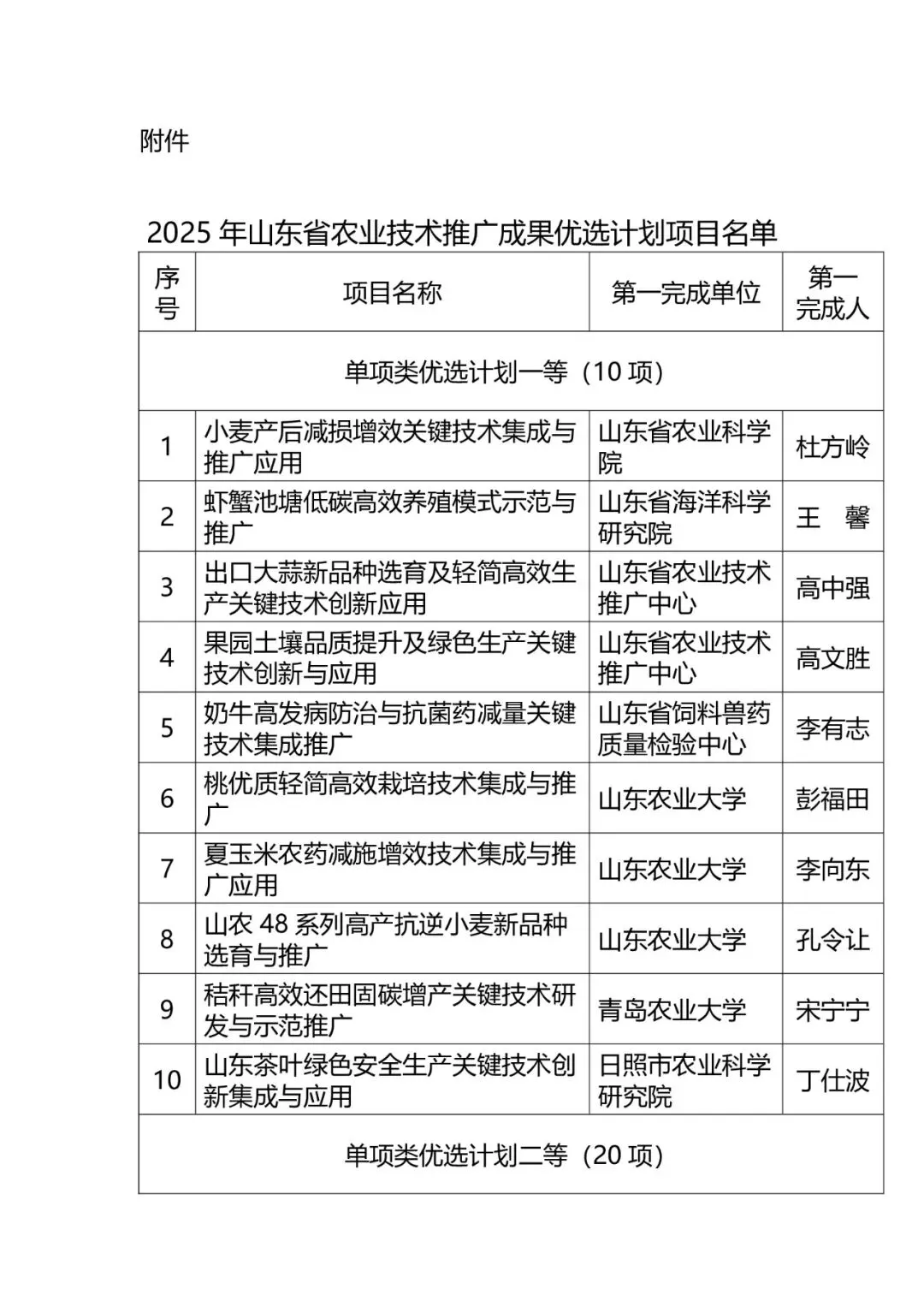 附件:2025年山东省农业技术推广成果优选计划项目名单
