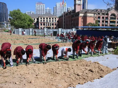 活动现场举行了隆重的"开耕破土仪式"。在林场高级工程师的指导下,大学生志愿者与小学生们共同挥锹破土,播下了春天的第一批种子。这一环节将传统农耕与现代劳动教育深度融合,让孩子们在沉浸式体验中感悟到了粮食的来之不易。