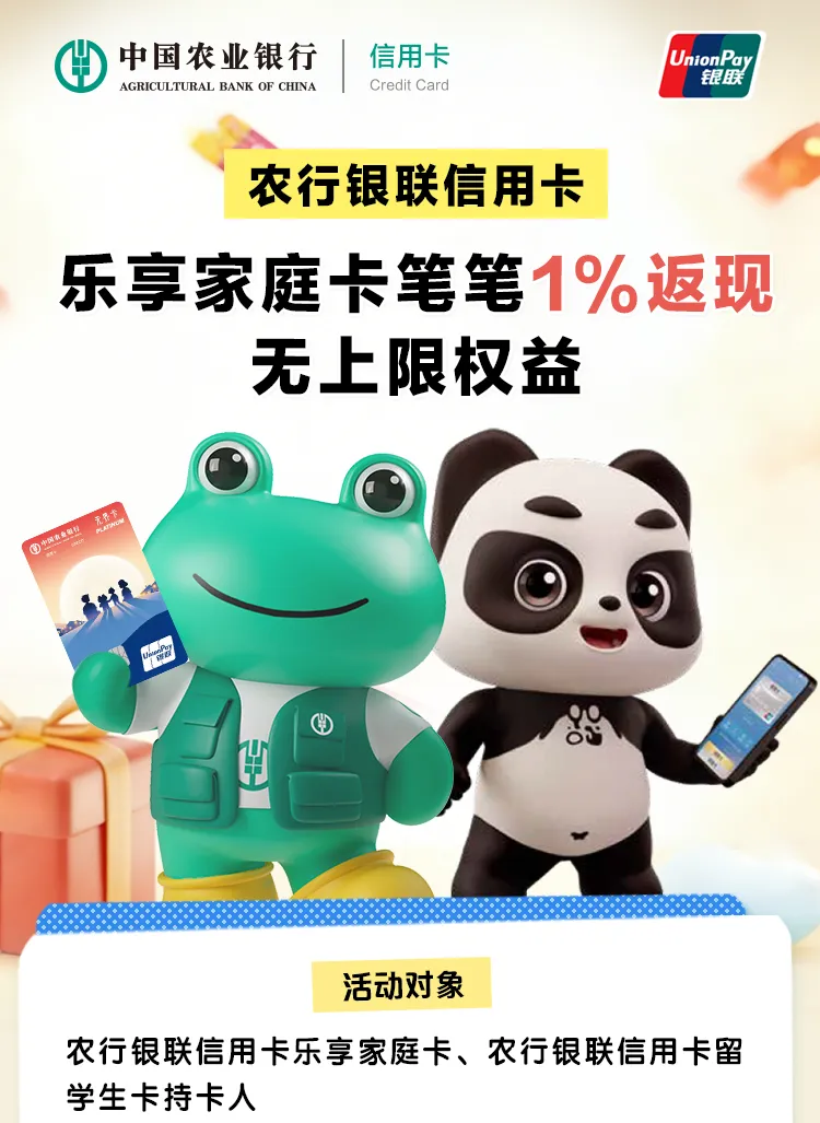 出境省钱 先用银联|农行银联乐享家庭卡,境外消费笔笔1%返现无上限