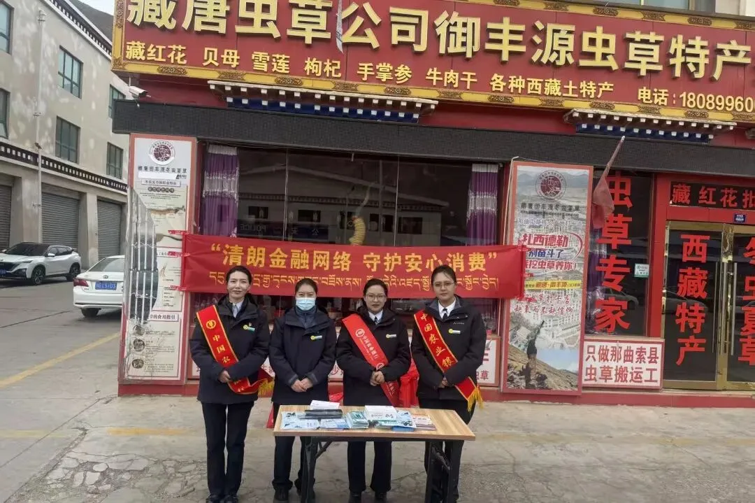 那曲分行统筹部署,支行精准落地,网点延伸服务,构建起“分行统筹、支行联动、网点扎根”的三级宣教体系。索县支行聚焦虫草交易旺季,针对性开展反诈宣教;班戈县支行深入西部牧区,把服务送到牧民家门口;申扎县支行走村入户,逐户讲解消保知识、排查风险隐患。活动期间,累计发放宣传折页2900余份,覆盖群众2000余人,将消保责任、普惠服务与乡村振兴深度融合,让每一份金融服务都能触达藏北草原的每一个角落。