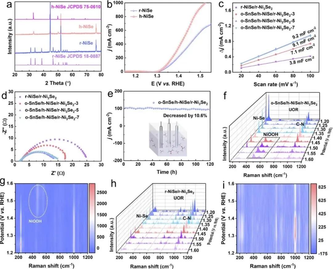 1. 纯h-NiSe的UOR活性显著高于纯r-NiSe,证实h-NiSe具有更高的本征催化活性
