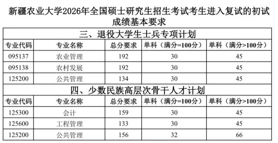 1.根据《新疆农业大学2026年全国硕士研究生招生考试考生进入复试的初试成绩基本要求》,一志愿考生进入复试名单将在我校研究生院官网进行公示。