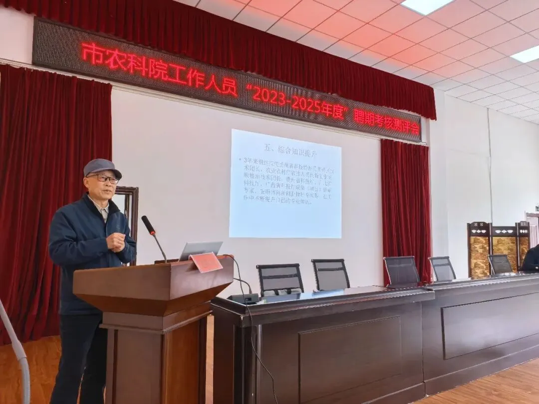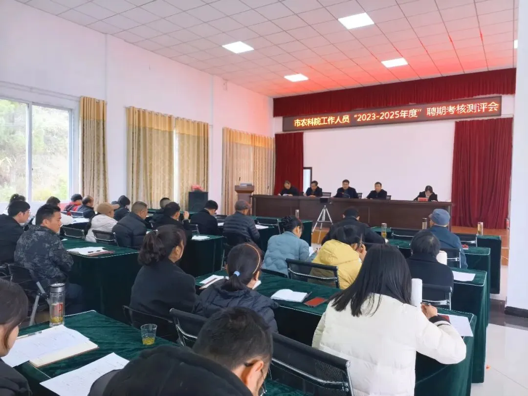 为全面、客观、准确地评价工作人员聘期内德才表现和工作业绩,市农科院于2026年3月18日召开了“2023-2025年度”聘期考核测评会。党委委员、副院长李敏主持会议,党委书记陈孟权宣读《安顺市农业科学院工作人员“2023-2025 年度”聘期考核工作实施方案》,并对工作开展提出要求。全院干部职工参加会议,对所聘人员从德、能、勤、绩、廉5个方面加以评价。