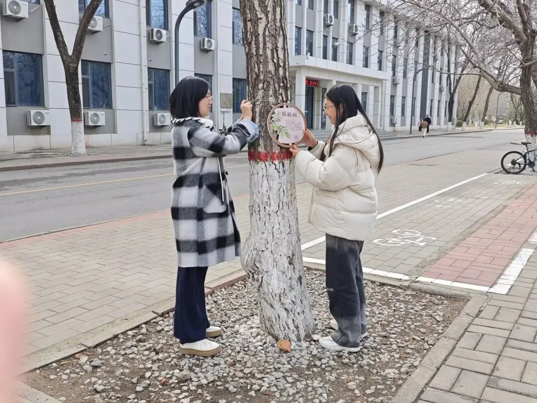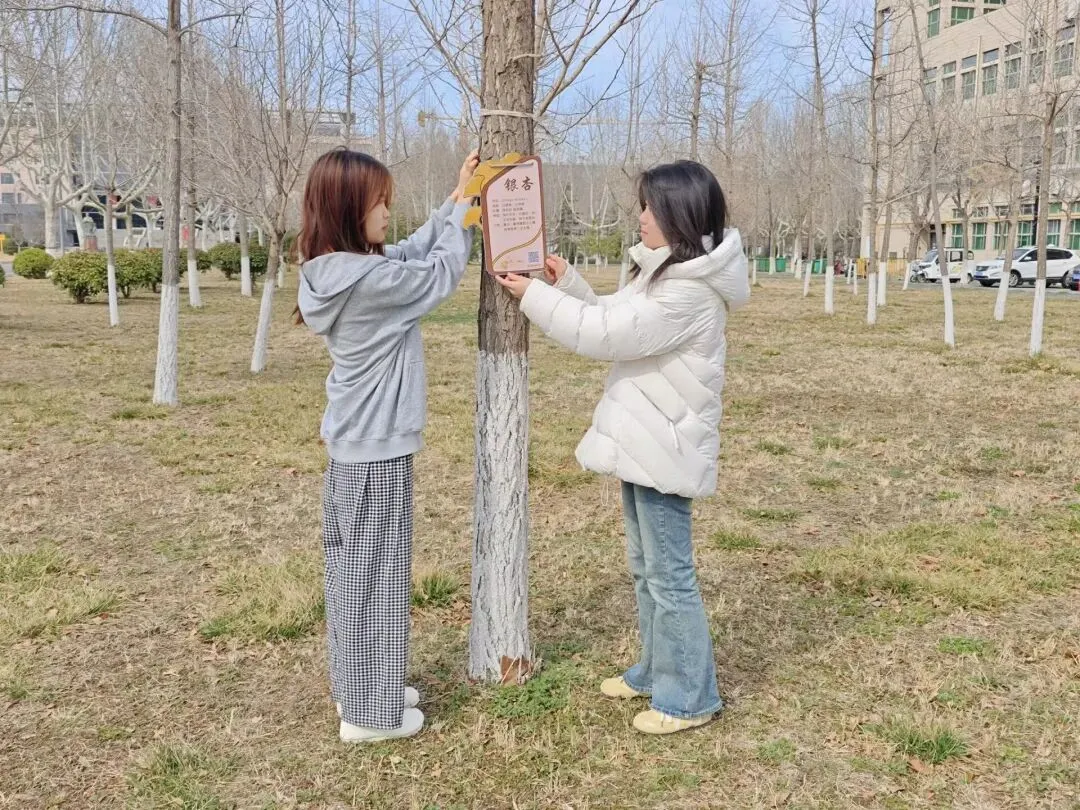为了提升师生校园植物认知水平,营造知绿、爱绿、护绿的良好氛围,3月15日,聊城大学新农科技社于博苑餐厅门口开展“植绿添彩,树识芳华”植树节树木铭牌制作与悬挂活动,为校园树木增添专属标识,传递生态保护理念。