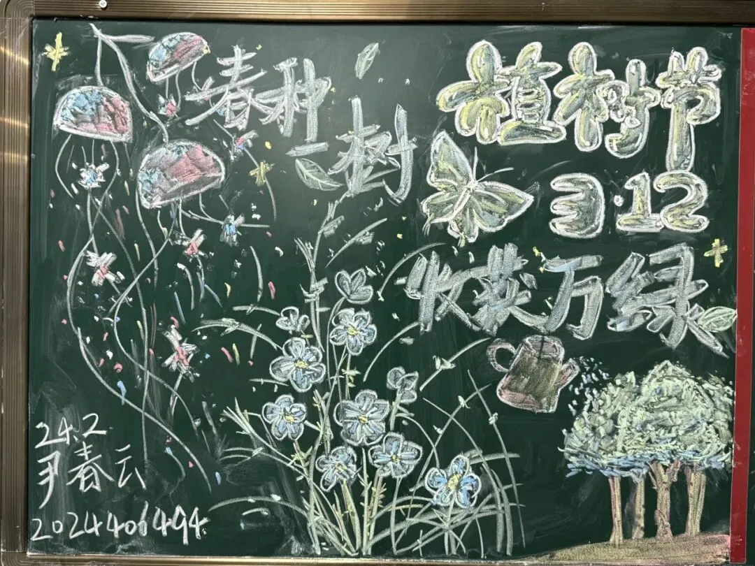 为传播植绿护绿知识,厚植校园生态文化,培育学生绿色理念与生态保护意识,3月15日,农业与生物学院于东校区2号教学楼4楼、5楼走廊举办“墨染绿意,笔绘春光”植树节主题黑板报活动。