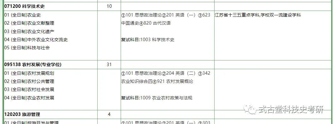 科学技术史考研:南京农业大学2024年硕士招生专业目录