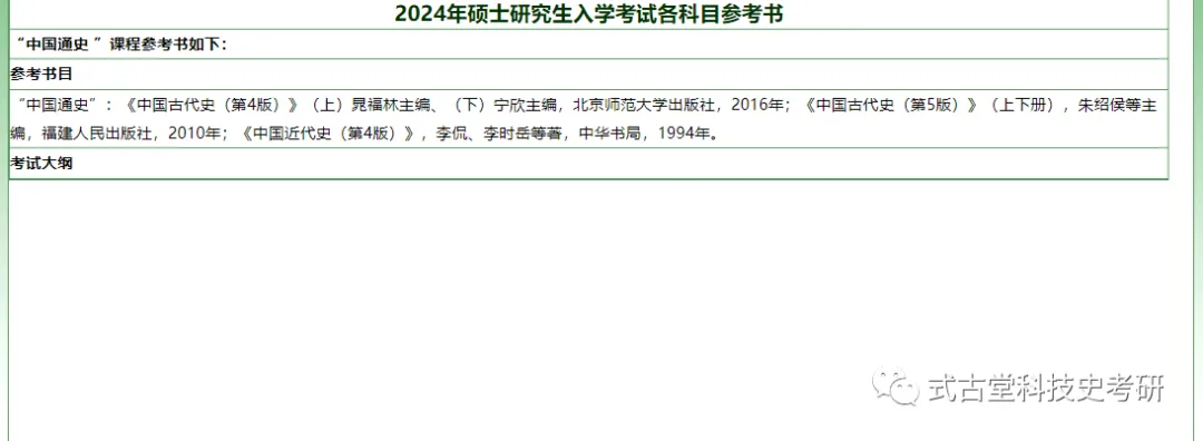 张世禄:《古代汉语教程》(第三版),复旦大学出版社,2005年。《中国古代史(第4版)》(上)晁福林主编、(下)宁欣主编,北京师范大学出版社,2016年;《中国古代史(第5版)》(上下册),朱绍侯等主编,福建人民出版社,2010年;《中国近代史(第4版)》,李侃、李时岳等著,中华书局,1994年。以上信息来源于南京农业大学研究生招生网和二级学院官网,欢迎同学们前来咨询与交流~