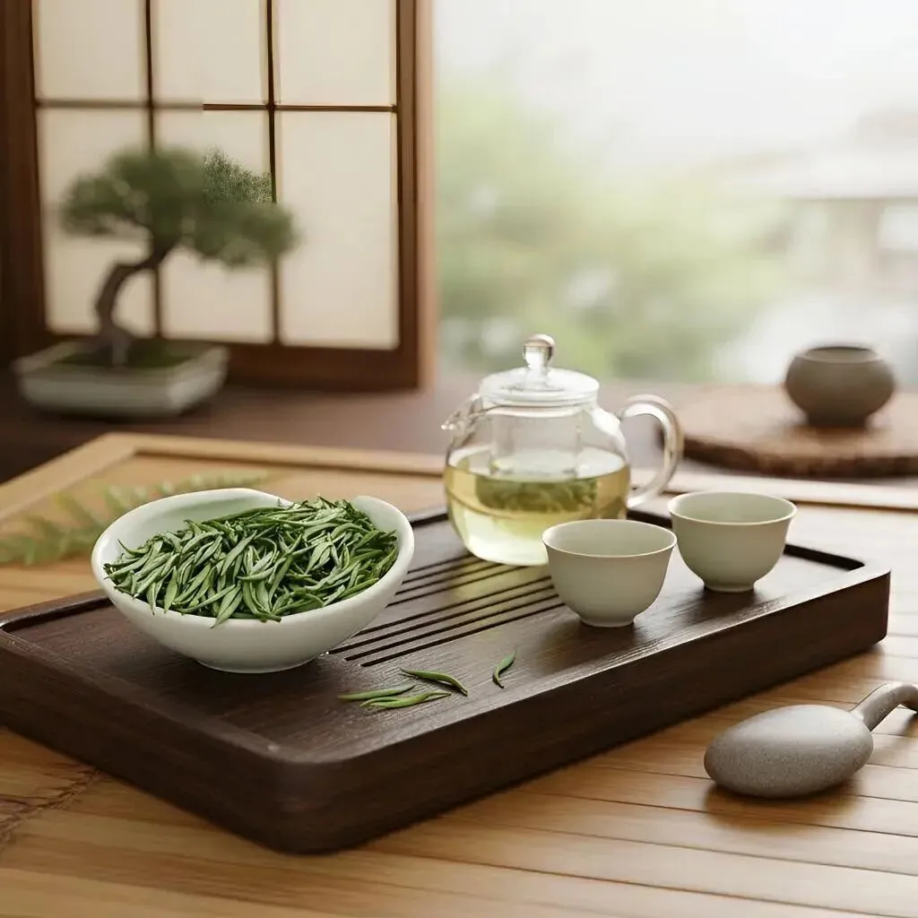 当茶叶落入杯中,沸水冲下,那一抹翠绿缓缓舒展,茶汤清亮,香气四溢